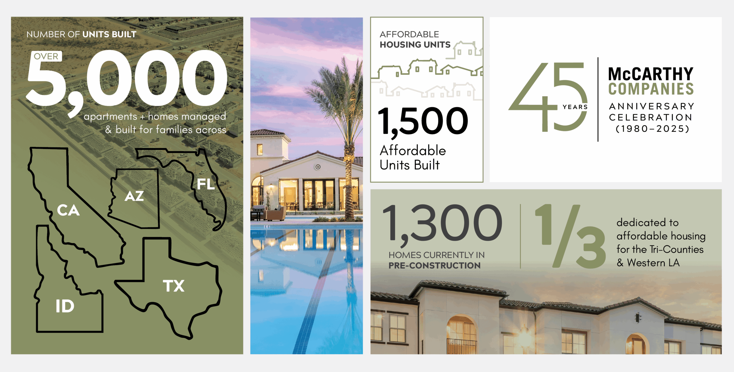 On August 25, 1980, Pat McCarthy laid the foundation for what would become McCarthy Companies. What started as a small house painting business in Ventura County quickly grew into a trusted full-service residential construction company, known for historic renovations and small apartment communities. Now, 45 years later, the company has built more than 5,000 residences nationwide, creating homes, strengthening neighborhoods, and carrying forward a legacy of craftsmanship and community.