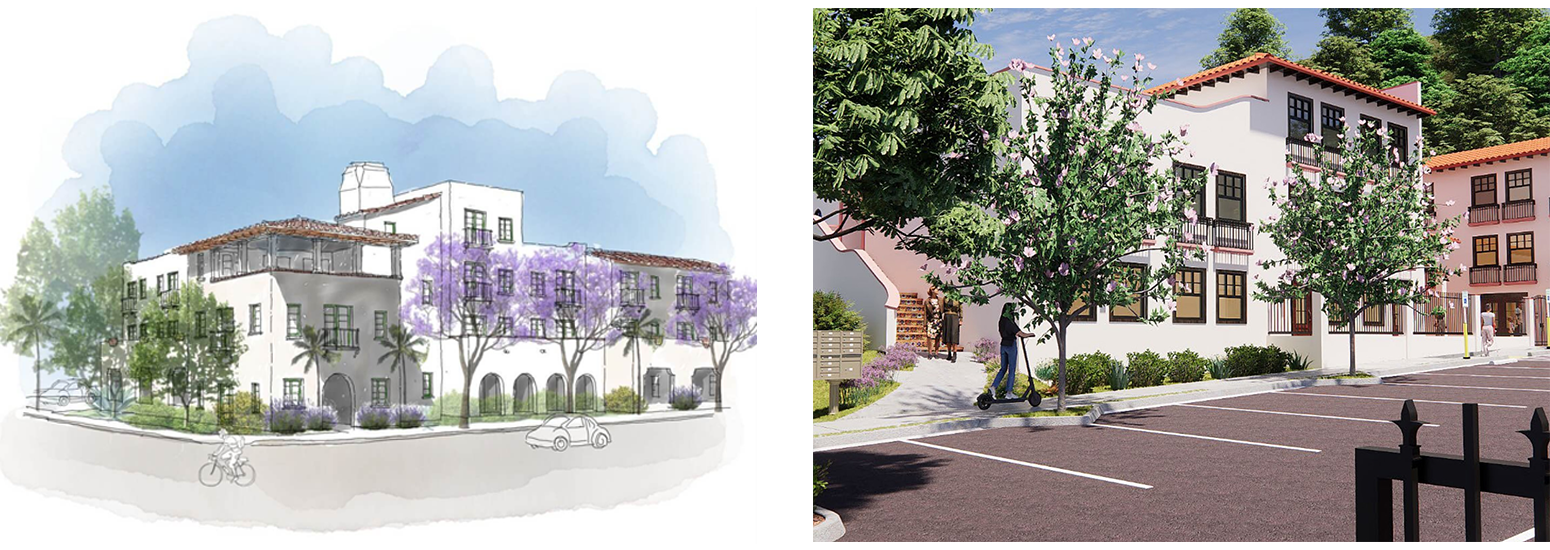 Jacaranda Court will provide 63 new affordable units for families in a three- and four-story building. The units will be constructed to serve moderate-income households, defined as earning between 80% and 120% of the AMI. There will be 7 units restricted to low-income households (80% of the AMI and below) with Project-Based Section 8 Vouchers already approved. The remaining units will be for moderate-income households, and one final unit will be a designated manager unit. The building will consist of 21 studios, 37 one-bedroom units and 5 two-bedroom units.