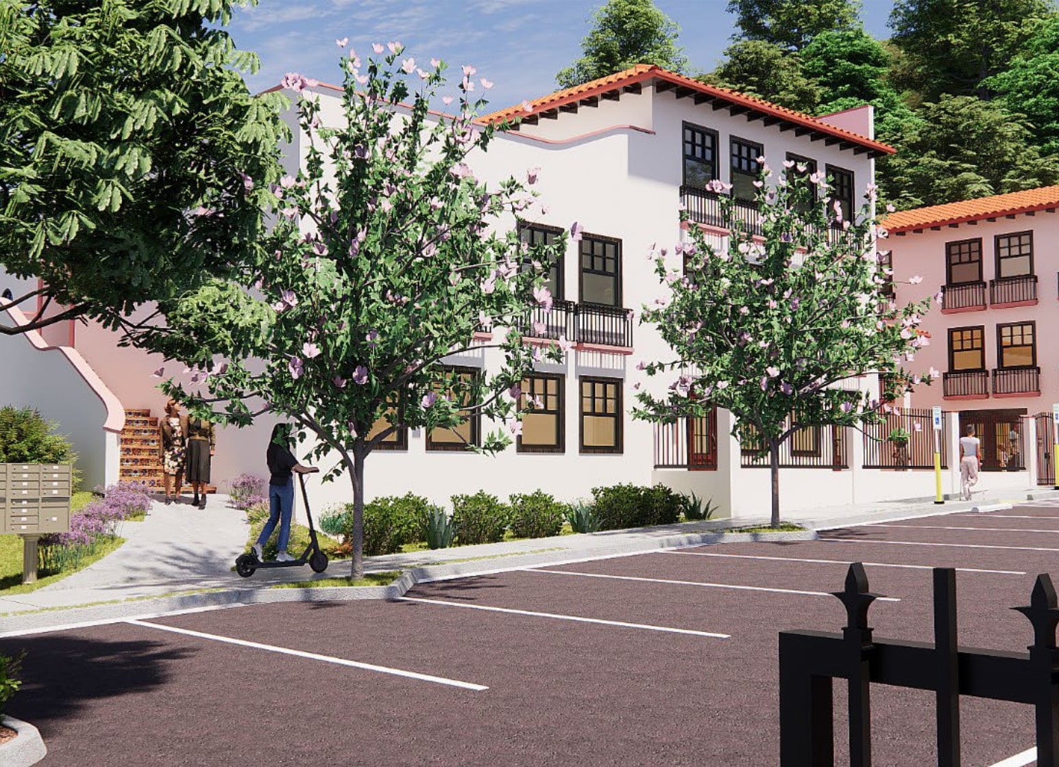 Camino de Salud will be a supportive housing development providing 49 affordable studio apartments within one, three-story building. Community amenities will include a meeting room, dining room, covered picnic areas, charging stations, a community garden, laundry facility, and bicycle storage.